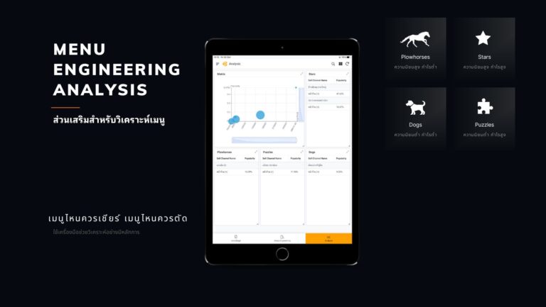 แอปพลิเคชันวิเคราะห์เมนูจากข้อมูลตัดสินใจซื้อ เพื่อจัดกลุ่มเมนูในร้านให้มีการจัดการอย่างมีประสิทธิภาพ เพิ่มยอดขายและลดต้นทุน