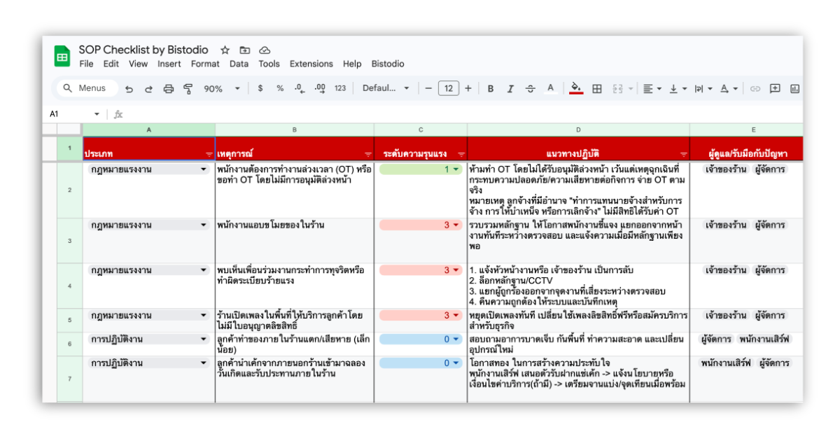 รวมไว้ในเทมเพลตเดียวบน Google Sheets เพื่อช่วยให้ร้านจัดระบบงานประจำวันได้ชัดขึ้น ลดความสับสนในการทำงาน และต่อยอดสู่มาตรฐานการปฏิบัติงานที่ใช้งานได้จริง